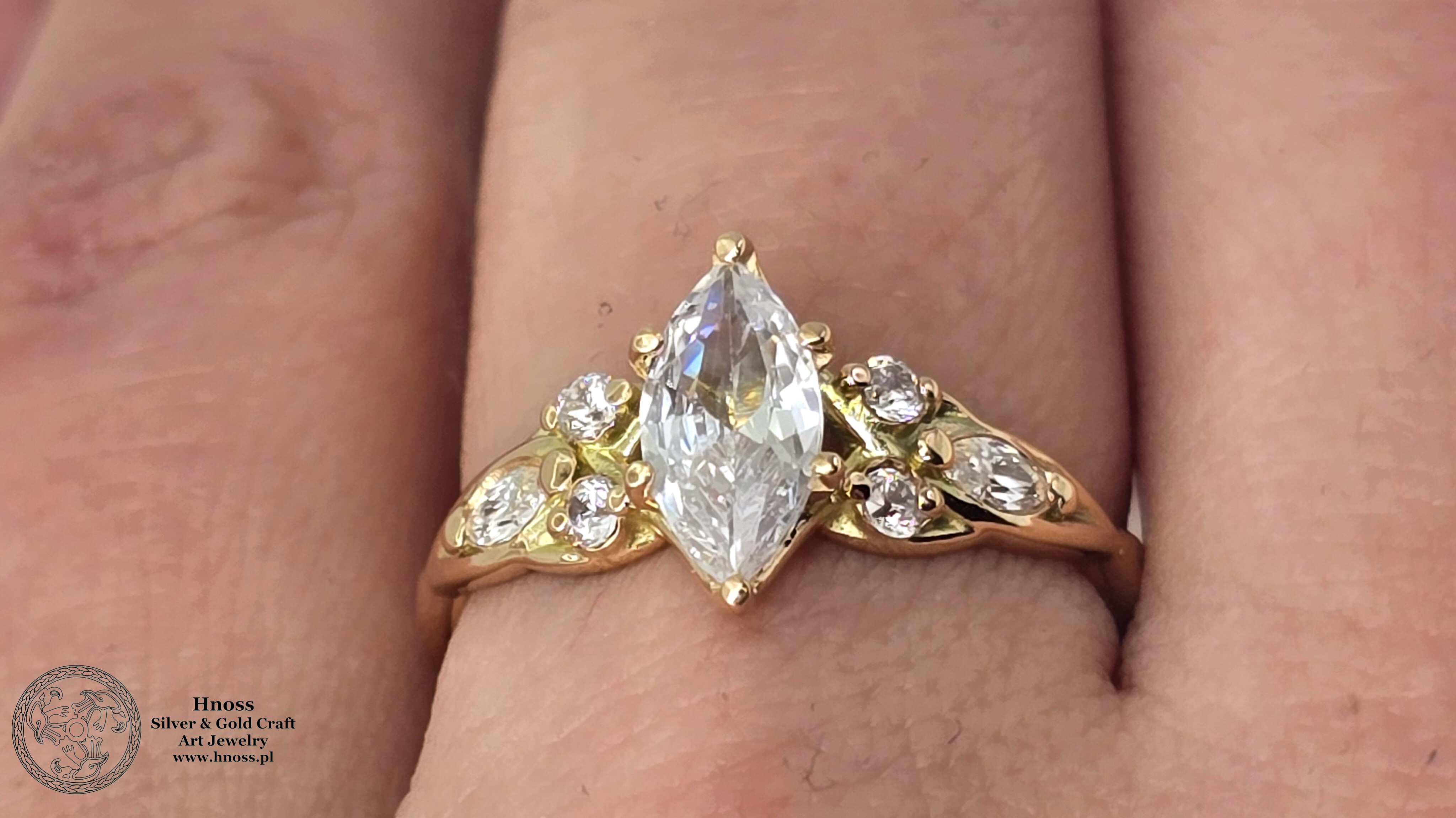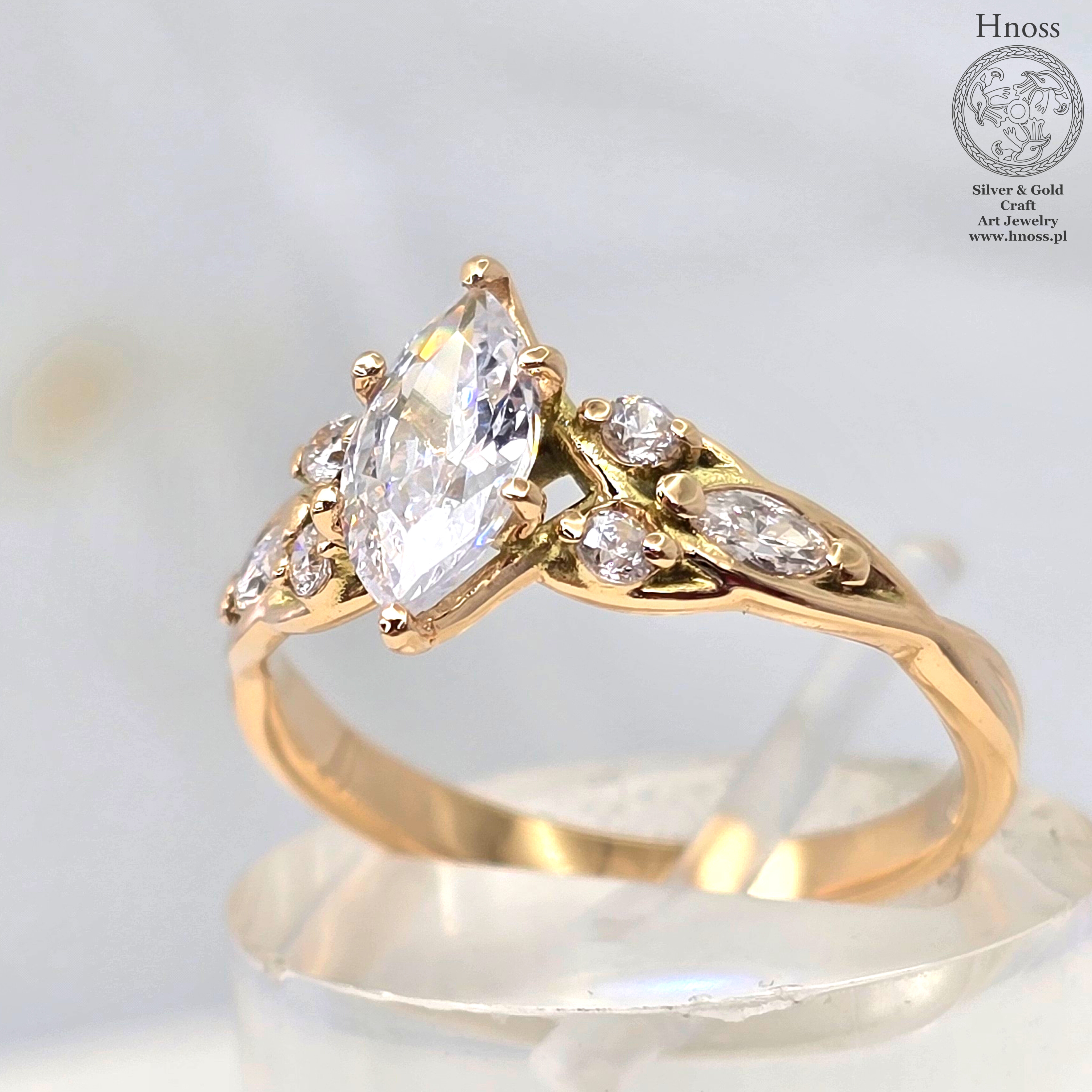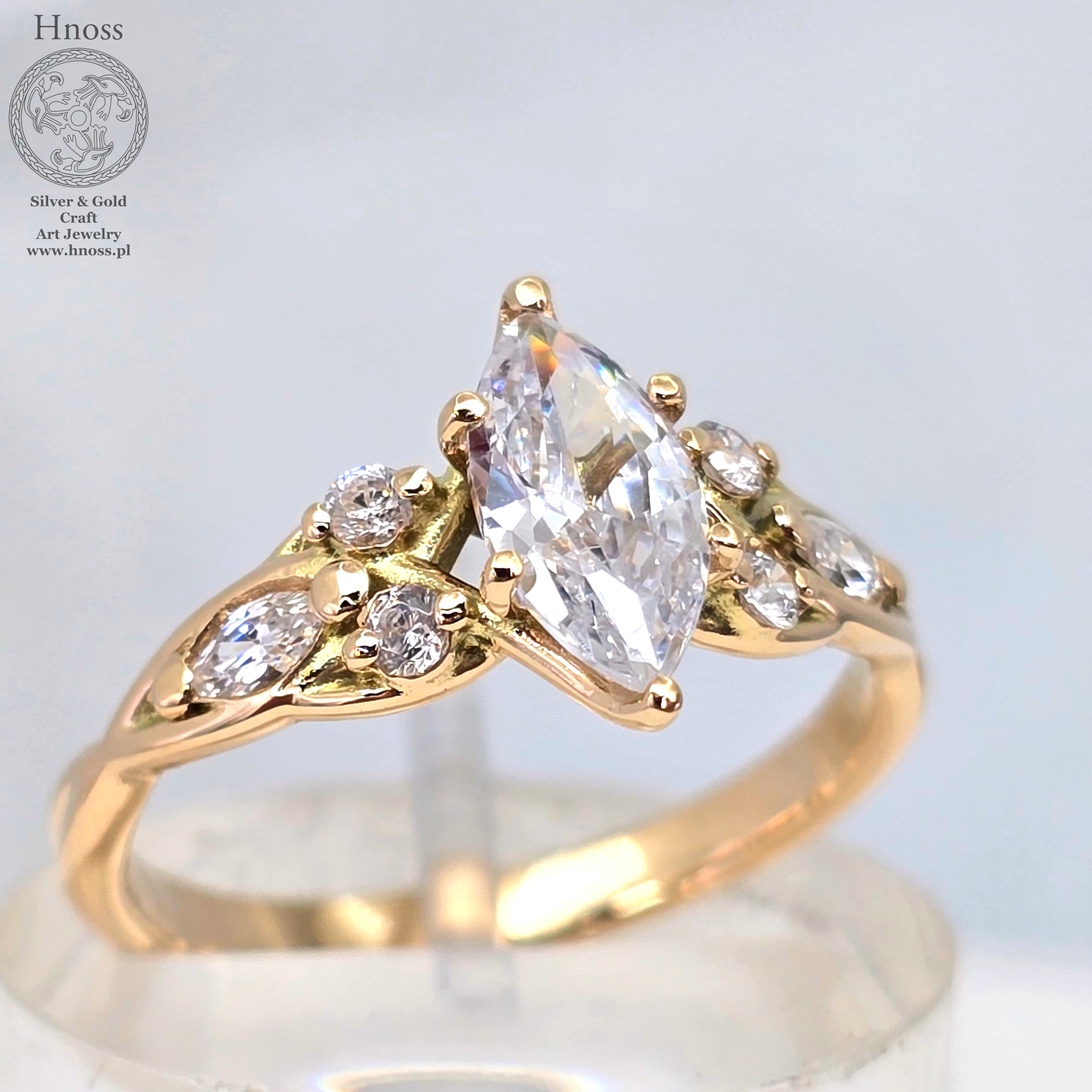 Elficki złoty pierścionek z cyrkoniami